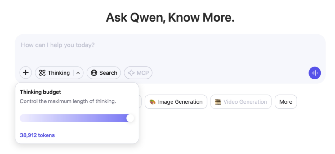 以上所有千问3模型都是混合推理模型。经「甲子光年」实测,用户可按需设置“思考预算”(即预期最大深度思考的tokens数量),进行不同程度的思考,灵活满足AI应用和不同场景对性能和成本的多样需求。