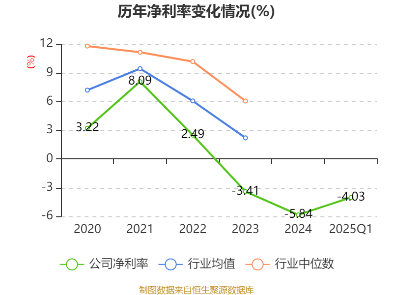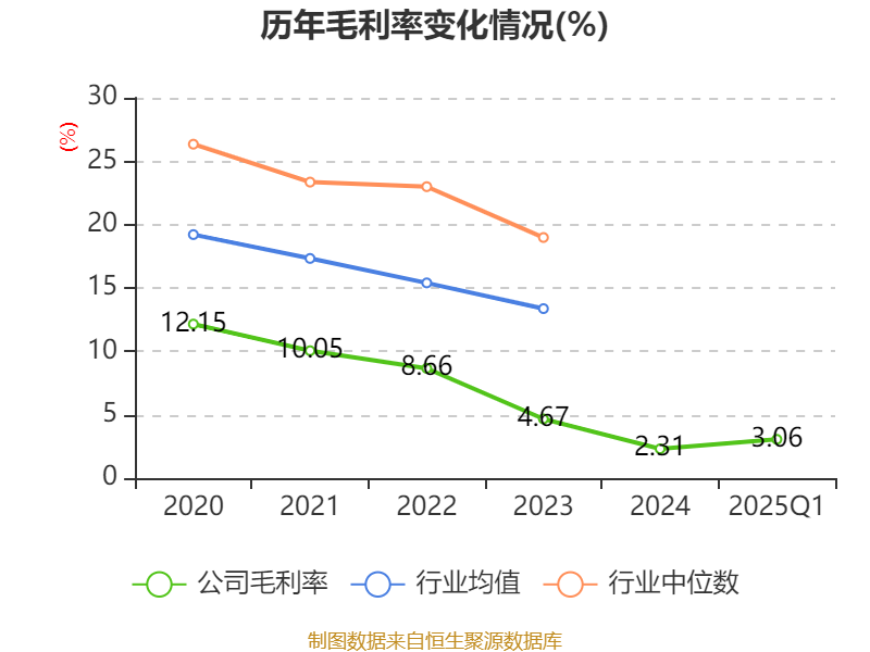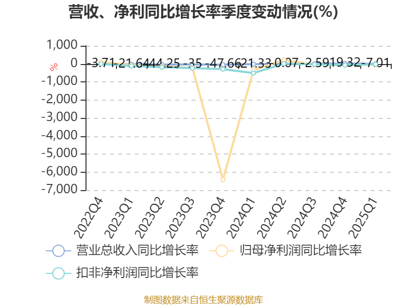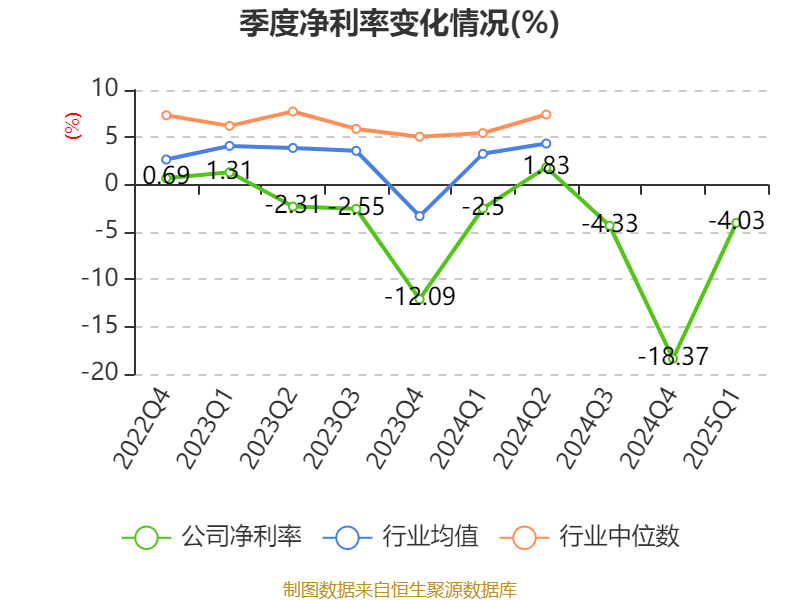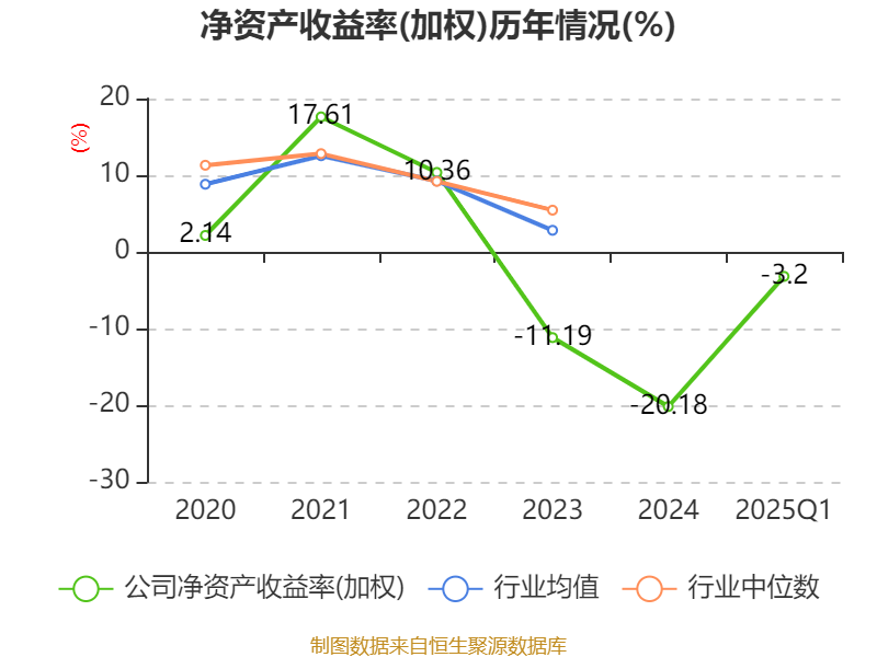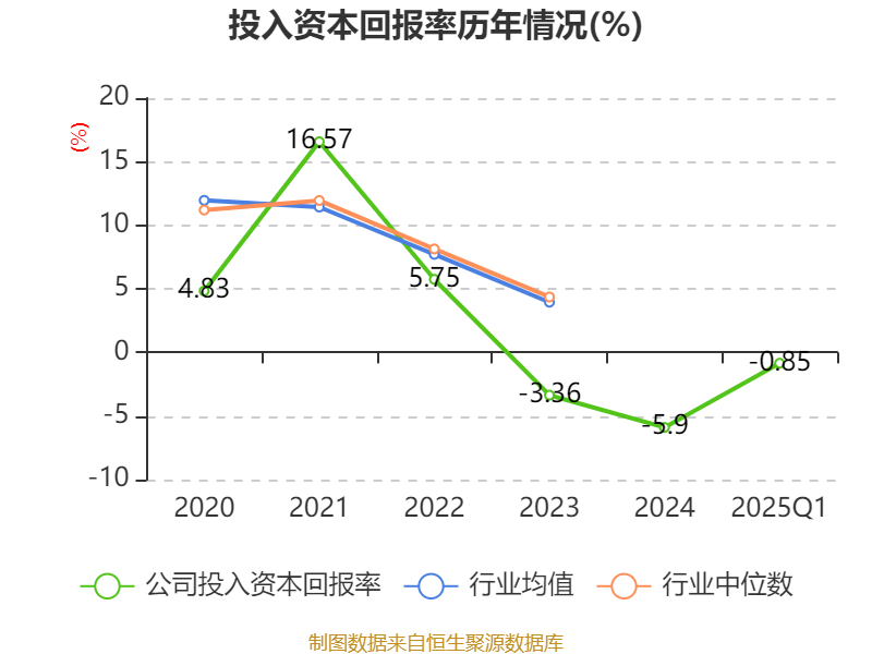 盈利能力方面, 2025年一季度公司加权平均净资产收益率为-3.2%,同比下降1.34个百分点。公司2025年第一季度投入资本回报率为-0.85%,较上年同期下降0.38个百分点。