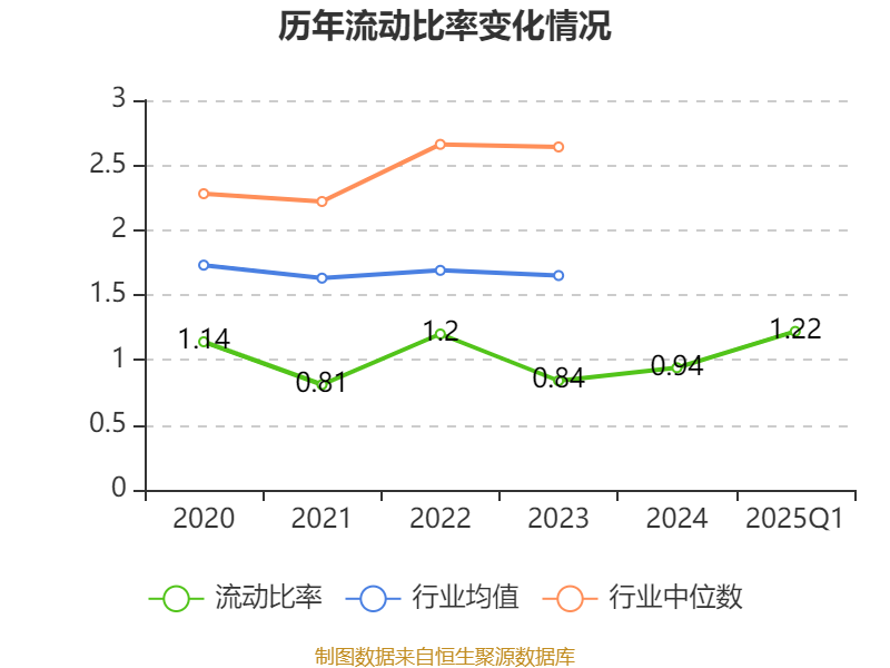 2025年第一季度,公司流动比率为1.22,速动比率为0.9。